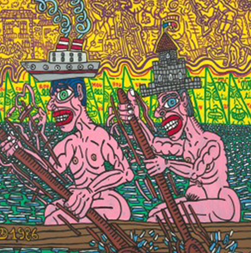 ''For me, a canvas can be influenced by naïve African advertisement agents, past an analogy in a primary schoolbook, by a dash of Picasso or Miró, or over again by drawings like comics, plus phony Standard arabic script, raw painting, very Dubuffet or Cobra. Like Jules Verne, without leaving my room, I've been to Timbuktu.'' Robert Combas